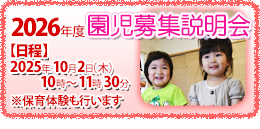 【保育体験と園児募集説明会】 10月2日(木)10時00分〜11時30分